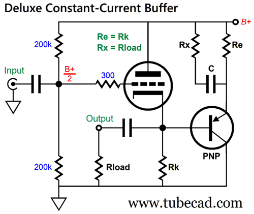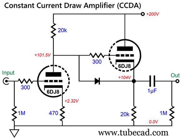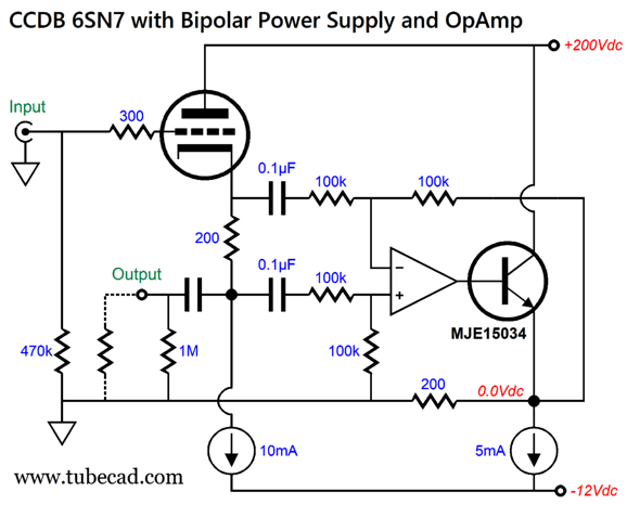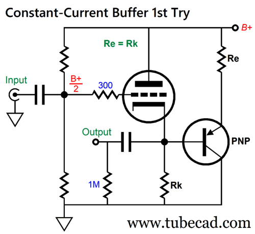 The problem with this workaround is that the constant-current source is located at the bottom, not the top of the triode. In other words, this is not a CCDB. Next, we see my first attempt at making a CCDB.