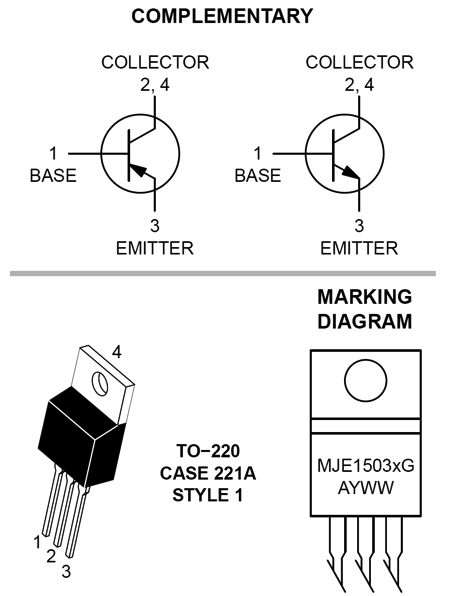 The MJE15035 is a high-voltage (350V) PNP power transistor in the TO-220 package, which finds its NPN complement in the MJE15034.