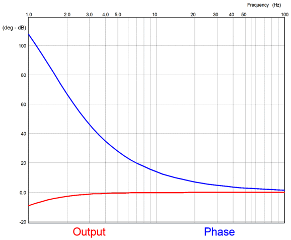 Better, but not perfect, as I do not believe that the dip in the midrange will actually obtain. Why not? The rear-firing woofers' directivity at high-frequencies and the enclosure width are enough to prevent those higher frequencies from meeting up with the front sound radiation. We do get the +6dB boost in the low-frequencies, but since the loudspeaker shifts 180-degree radiation at higher frequencies to 360-degree radiation at low-frequencies, it incurs a -6dB loss at low-frequencies. In other words, flat frequency response results, as long as the loudspeaker is relatively narrow and tall and stands well away from the back wall. I envision using four small woofers or fullrange drivers, say 4in to 5in in a cabinet 8-inches square by three to four feet tall. The tweeter could be an AMT or planar driver. So have I ringed the last drop from this crossover topology? Not likely. An odd feature (or liability) of this topology is that it creates a non-flat impedance plot, as the impedance rises at low-frequencies.