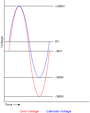 In addition, the driver stage must be able to swing to at least –380 volts to drive the cathode negatively to –300 volts. (A global feedback loop would force the driver stage swing even more deeply into the negative to turn the output tube off, as triodes are harder to turn off than they are to turn on.) And +/-340 volts equals a power supply voltage that must at least equal 680 volts, with perfect output devices; and, in actual practice, at least 800 volts, with real driver tubes, such as the 6BX7, 6SN7, 12B4, and 5687. Yet, the output stage’s power supply could be as low as 400 volts.