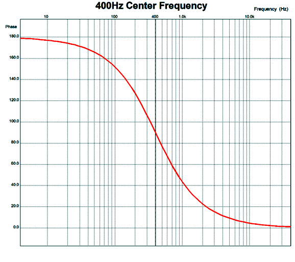 Below is the phase versus frequency graph, which begins at 4Hz and ends at 40kHz, thus centering at 400Hz on the log scaled horizontal axis.