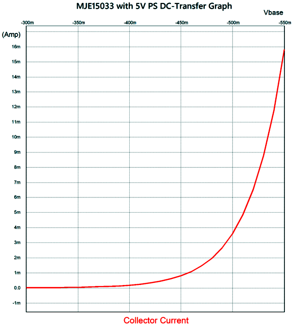 Note the ±5Vdc rail voltages. The MJE15033 PNP transistor monitors the voltage drop across the two 0.1-ohm emitter resistors. The reason we can get away with such a low emitter-to-base voltage on this transistor is that it only draws 0.25mA.